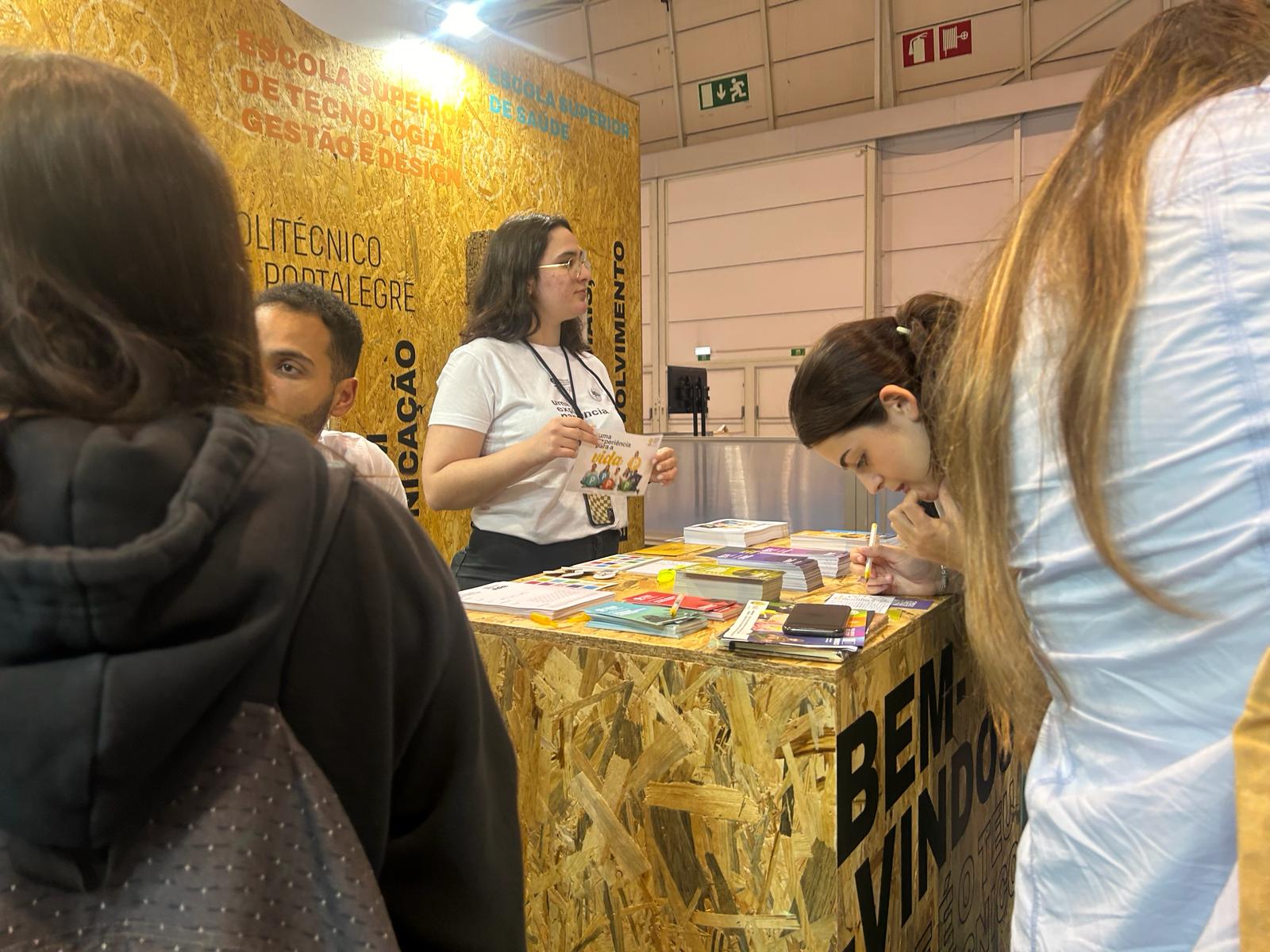 Além da oferta de merchandising, esta instituição de ensino superior apresenta um stand totalmente equipado “com frases e espelhos”, que naturalmente atraem mais visitantes, que gostam “de vir tirar fotografias”, revela Liliana Pêgo, antes de mencionar outras dinâmicas do stand, como por exemplo a sopa de letras.