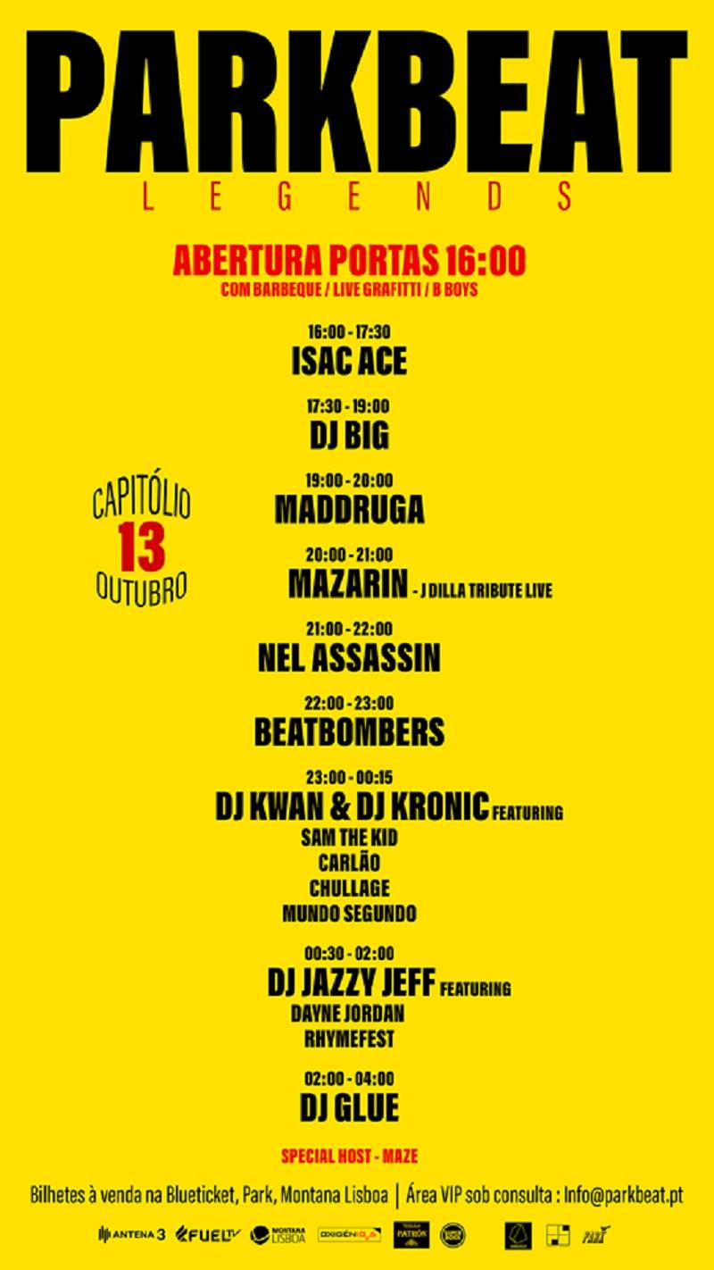 No palco principal do Capitólio a música arranca às 21h com Nel Assassin, seguido da dupla Beatbombers - Ride & Stereossauro. Entre as 23h e as 00h15 momento histórico do Rap Nacional com a subida ao palco de Sam The Kid, Carlão, Chullage, e Mundo Segundo, a convite de DJ Kwan e DJ Kronic nos pratos. O cabeça de cartaz DJ Jazzy Jeff actua às 00h30 acompanhado do seu MC habitual Dayne Jordan e o MC de Chicago Rhymefest como seu convidado especial. DJ Glue encerra o lineup até às quatro da manhã.