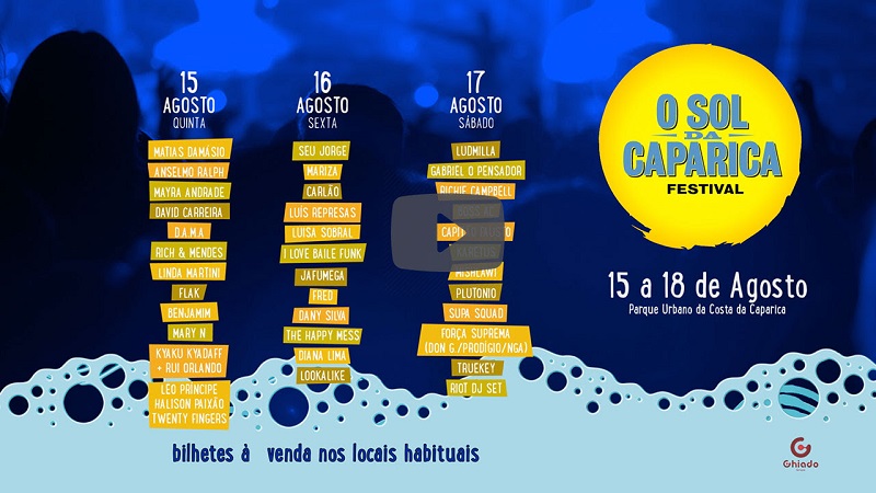 Richie Campbell, Mishlawi, Plutonio, Mayra Andrade, Truekey, The Happy Mess, Diana Lima, Halison Paixão, Twenty Fingers, Mary N e Lookalike são as últimas confirmações para o Festival O Sol da Caparica, que regressa ao Parque Urbano da Costa da Caparica, entre 15 e 18 de agosto. Estes nomes juntam-se aos já confirmados Seu Jorge, Mariza, Gabriel, O Pensador, Capitão Fausto, Força Suprema ou ainda Anselmo Ralph.